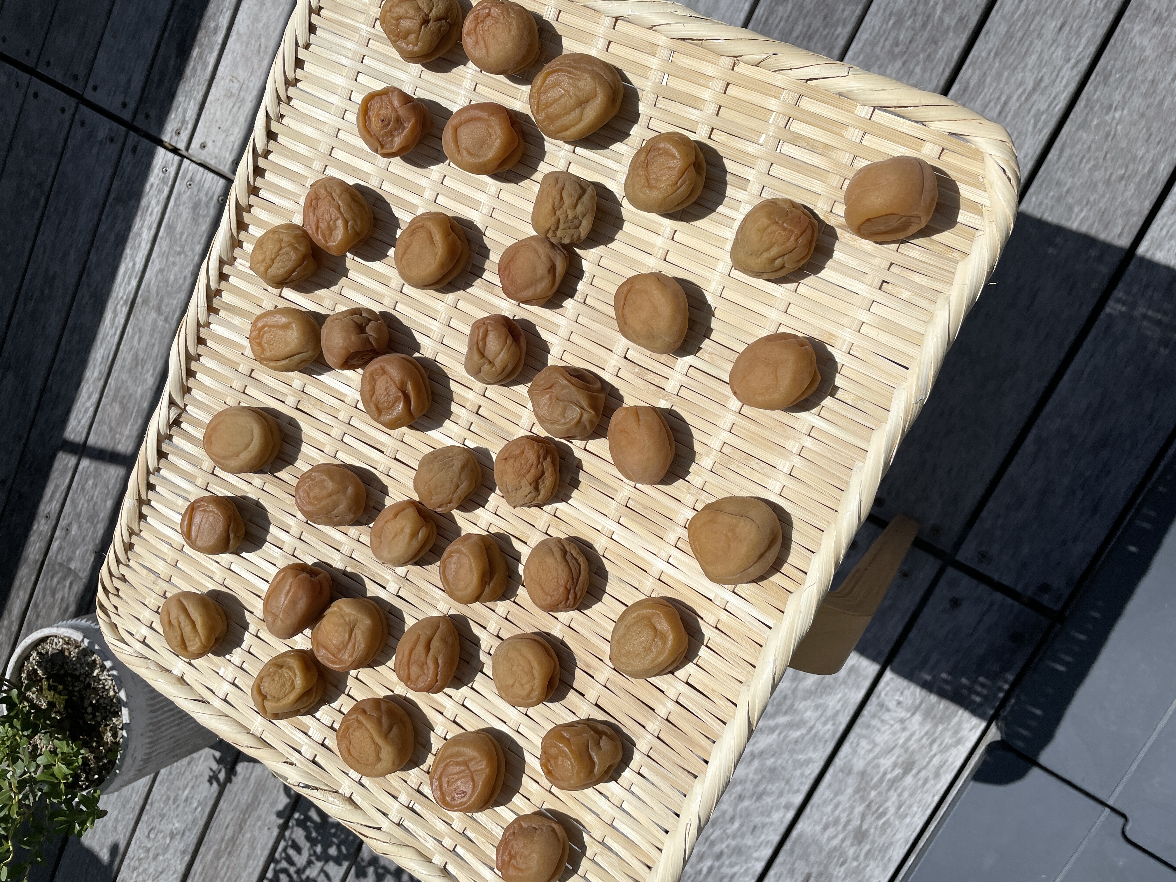 あまりにも天気が良く、この先も雨が降らない予報だったので、梅干しの土用干しを始めました。