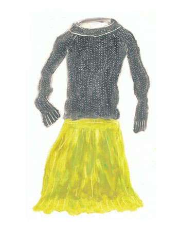 2012年、 Felissimo haco.のブランド「EmTROIS」の秋のコーディネートの絵を4点と小物2点とタイトル文字です。